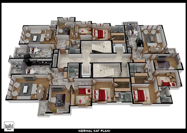 Projemiz 12 normal kat, 1 zemin kat, 1 bodrum kat olmak üzere 14 kattan oluşmaktadır. Normal katlarda 3 daire, zemin katta bina girişi, 1 işyeri, kapıcı dairesi ve toplantı odaları mevcuttur. Projemizin temelinde Jet ground uygulaması yapılmıştır.